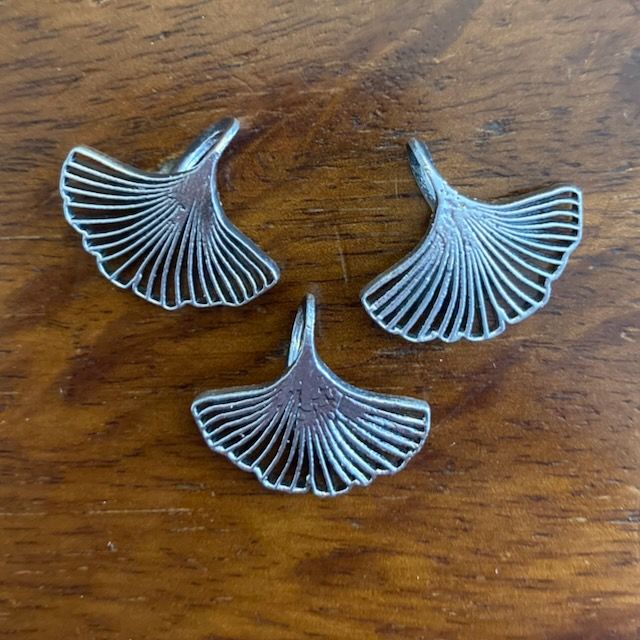 While walking around my local streets this autumn, I noticed a gingko leaf on the sidewalk. It had a beautiful fan shape, unusual and distinctive. That inspired me to create this new pendant.